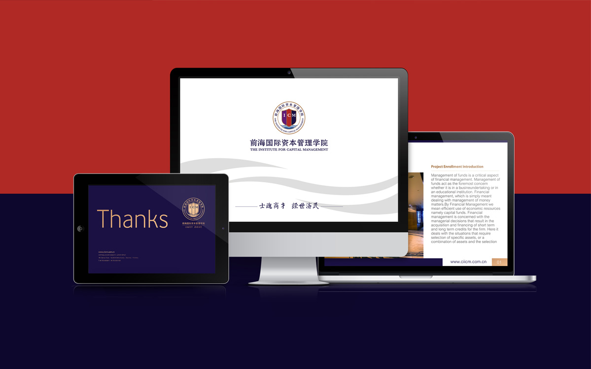 項(xiàng)目背景:前海國際資本管理學(xué)院是由前海華人國際資本管理教育基金會(huì)捐資創(chuàng)立,全球首創(chuàng)、以資本和財(cái)富管理為核心內(nèi)容,擁有獨(dú)立法人資格的非營利性教學(xué)與研究機(jī)構(gòu)。學(xué)院首創(chuàng)“EMCA”高級(jí)管理碩士和“MCA”資本管理碩士教育項(xiàng)目,融合經(jīng)濟(jì)學(xué)、金融學(xué)、法學(xué)、會(huì)計(jì)學(xué)、哲學(xué)、人文歷史等多元學(xué)科。TTDBrand此次工作重點(diǎn)在優(yōu)化提升整體vi形象,建立系統(tǒng)性vi規(guī)范系統(tǒng),并樹立統(tǒng)一的視覺輸出標(biāo)準(zhǔn)與品牌宣傳系列規(guī)范。達(dá)到強(qiáng)化品牌符合,規(guī)范品牌系統(tǒng)的目的。